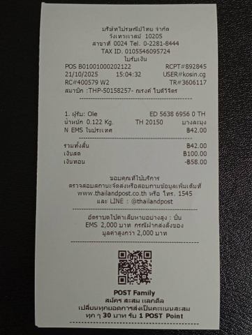 แจ้งเลขพัสดุจัดส่งEMS