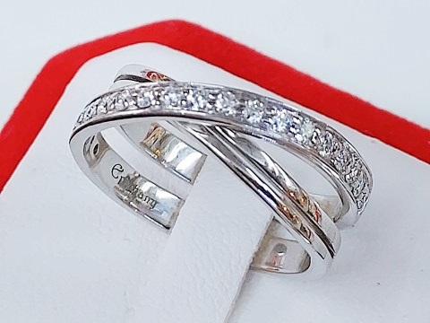 แหวนเพชรหลุดจำนำ ทองขาว 750 (18K) ทรงแถวไขว้