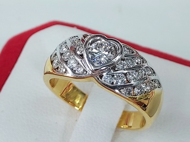 แหวนเพชรหลุดจำนำ ทอง90 กระเปาะรูปหัวใจ บ่าแถว