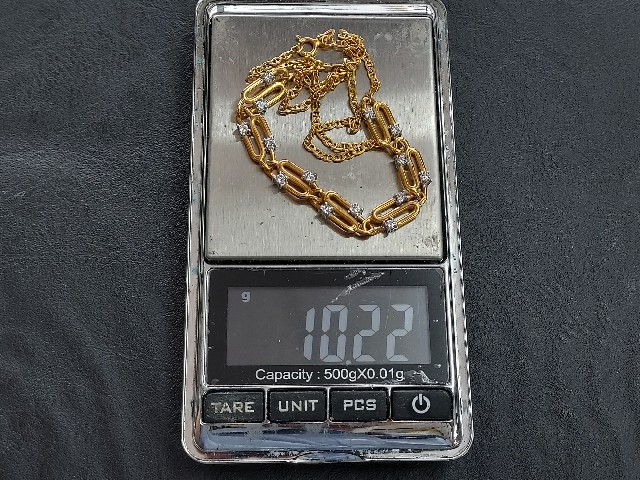น้ำหนักรวม 10.2 กรัม สปริงกลม 5 มิล สายทอง 18K ยาวรวม 38 ซม.