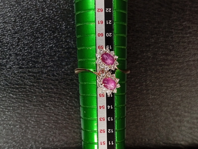 แหวนเพชรหลุดจำนำ ทอง18K ทรงไขว้ ทับทิม เล่นไฟ มีสตาร์ เนื้อแก้ว 3 x 4 มิล