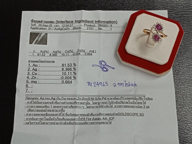 น้ำหนักรวม 3.5 กรัม หัวแหวนยาว 1.7 ซม. ระหว่างหัวแหวนดัดได้ ไซท์ 53