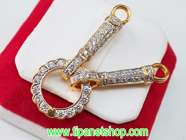 ขั้วเพชรทรงกลม ทอง18K ก้านเหลี่ยม ห่วงหนา 2 ชั้น