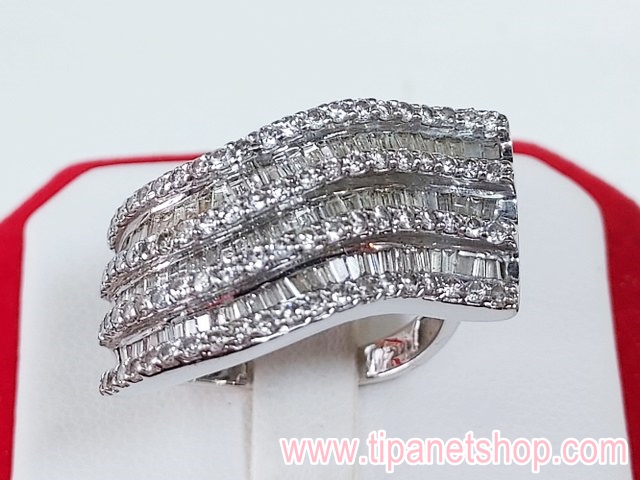 แหวนทองขาว ( ปั๊ม 14 K ) ทรงแฟนซี ยาว 2.4 ซม.