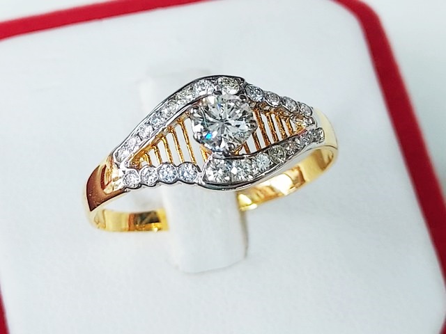 เพชรเกสรใหญ่ 0.25 กะรัต ด้านหน้ามีช่อง ช่วยให้ แหวนดูโปร่งขึ้น
