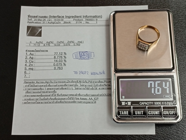 น้ำหนักรวม 7.8 กรัม หัวแหวน 1.5 มิล ไซท์ 66