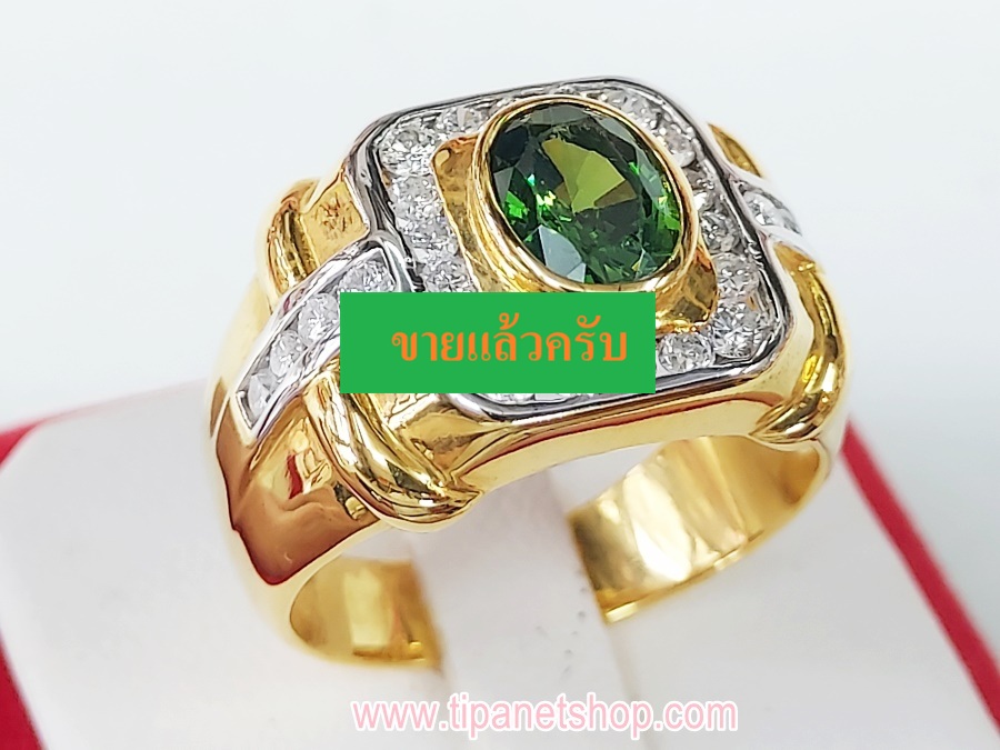 แหวนพลอยเขียว (กรีนโครมไดออกไซท์) เรือนทอง14K พลอย เจียรรูปไข่ 7 x 9 มิล