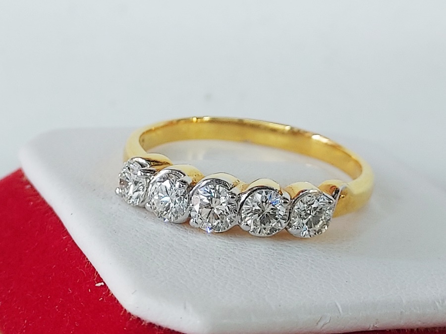 แหวนทอง18K ทรงแถว เลียง 5 เม็ด