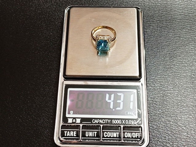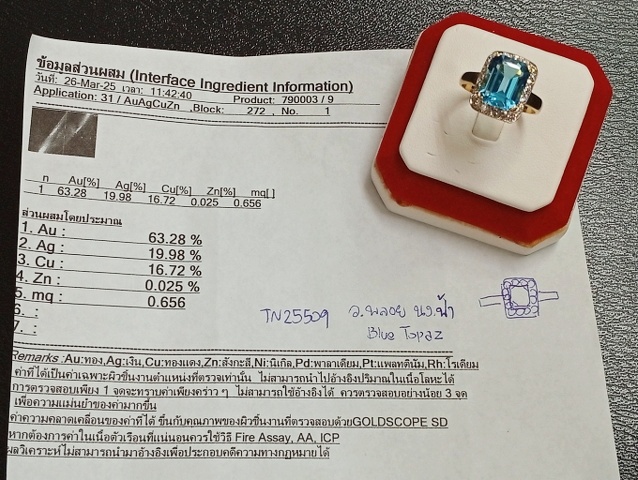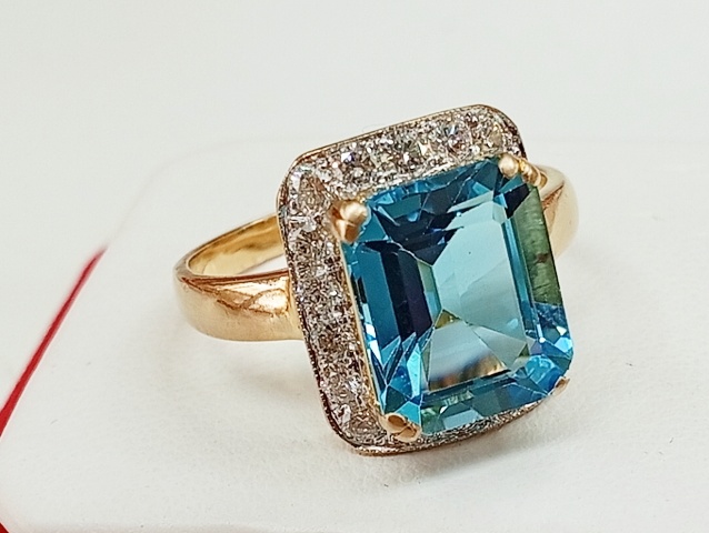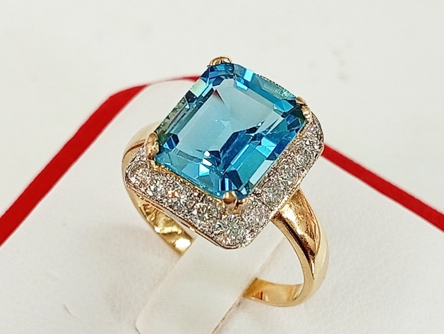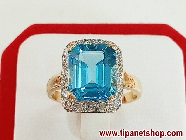 แหวนบลูโทพาสบ่าเพชร | ทอง 14 K | เพชรแท้ธรรมชาติ
