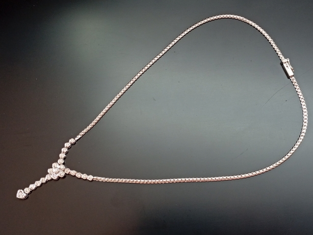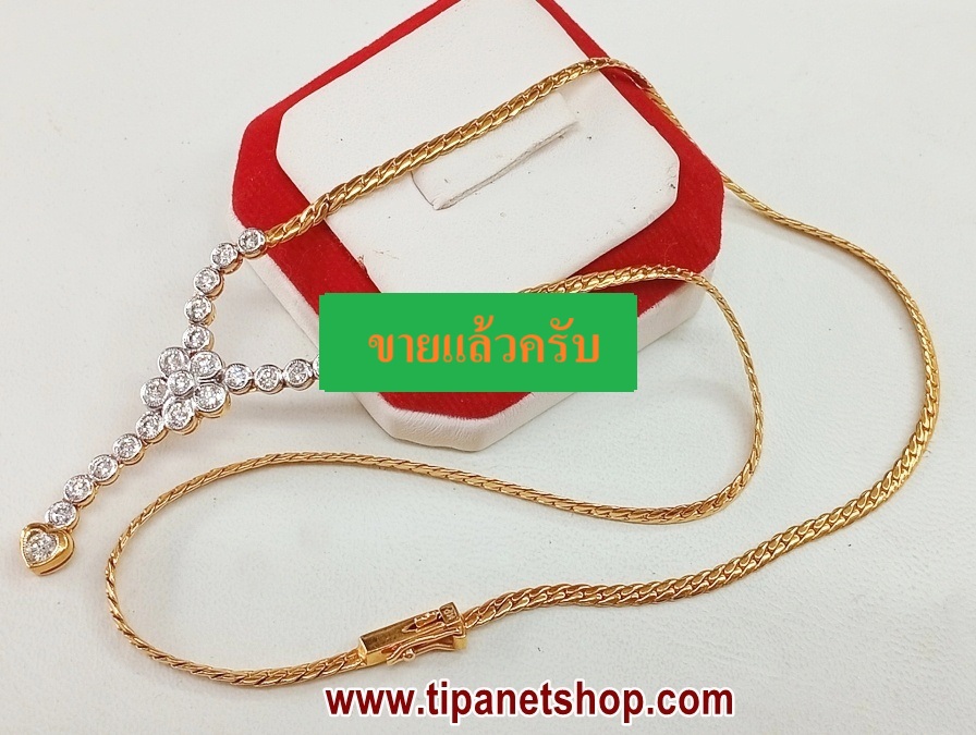 สร้อยคอทอง 18K (75%) ตรงกลางเป็น กระจุกเพชร ปลายสร้อยรูปหัวใจ