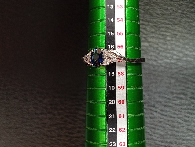 แหวนเพชรหลุดจำนำ ทองขาว 18K ไพลิน เจียร 6มิล