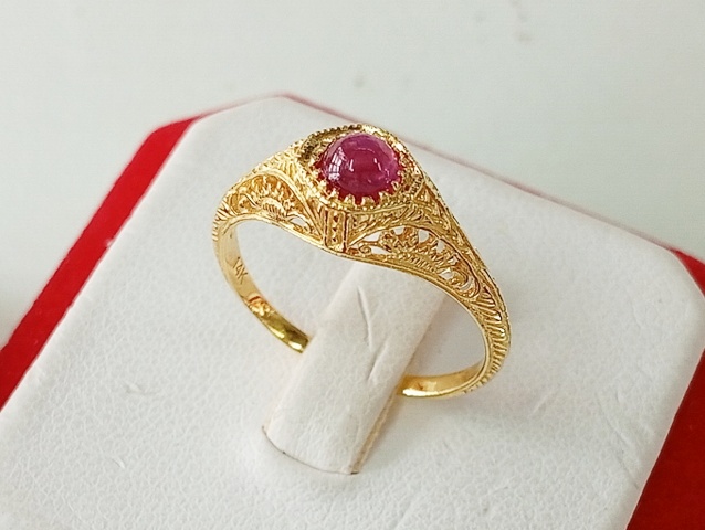TN25532 แหวนทับทิม เรือนมีลาย ไซท์ 52