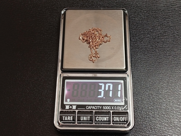 น้ำหนักรวม 3.7 กรัม ตะขอ 1 ซม. ยาว 15 นิ้ว