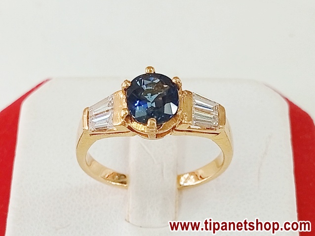 แหวนไพลินบ่าเพชร | ทอง18K | เพชรแท้ธรรมชาติ