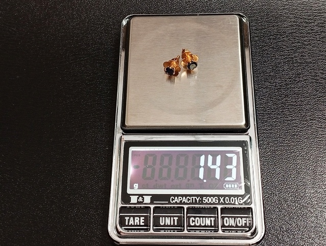 น้ำหนักรวม 1.4 กรัม กว้าง 8 มิล ก้านเป็นเกลียว แป้นเรียบ