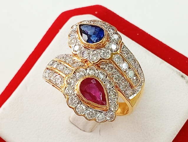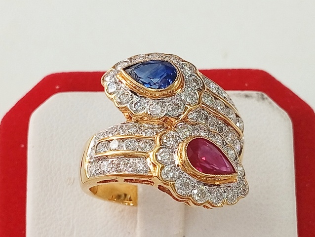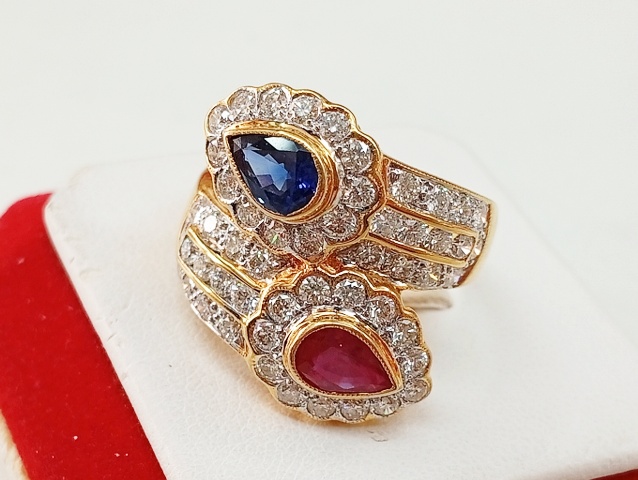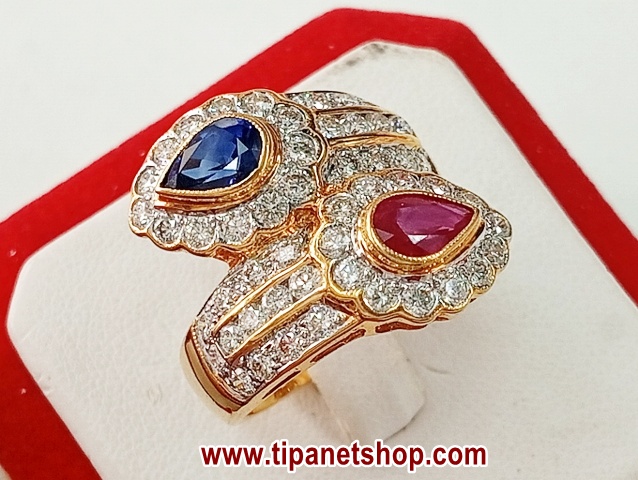 แหวนทับทิมไพลินทรงไขว้เพชร | ทอง 18K | เพชรแท้ธรรมชาติ