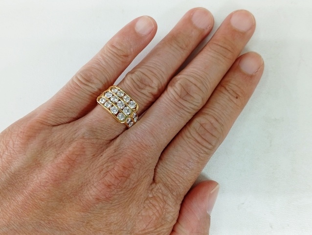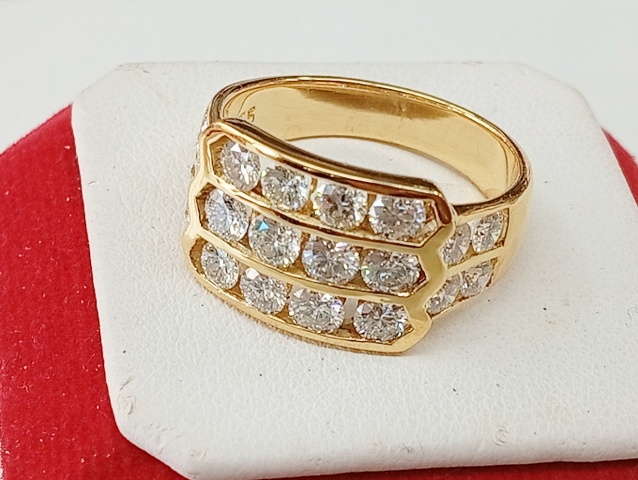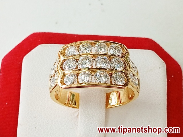 แหวนเพชร 3 แถว เรียบเนียน แนบนิ้ว ด้านหน้าโชว์เพชรเต็ม 3 แถว