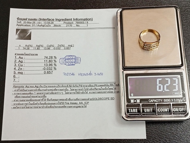 น้ำหนักรวม 6.2 กรัม หน้าแหวน 1.1 ซม. ไซท์ 55