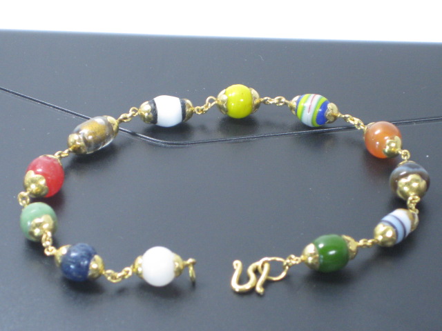 สร้อยข้อมือ ทอง 90% ลูกปัดทวา หลากสี 12 เม็ด