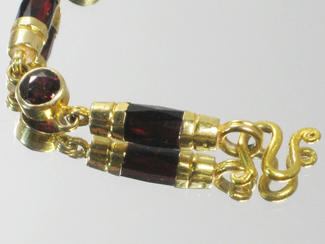 สร้อยข้อมือ ทอง90% หุ้ม โกเมน เจียร 11 เม็ด ทรงกลม 5 เม็ด และ เม็ดแตง 6 เม็ด