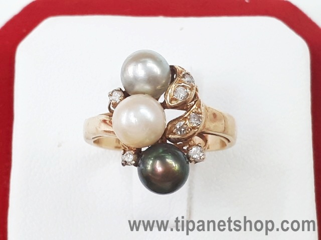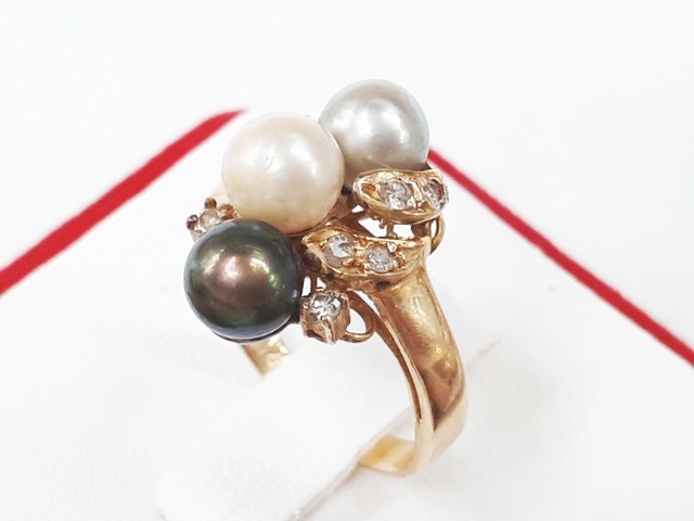 แหวนทอง14K ทรงแฟนซี มุกกลม ประมาณ 5 มิล สี ขาว เทา ดำ