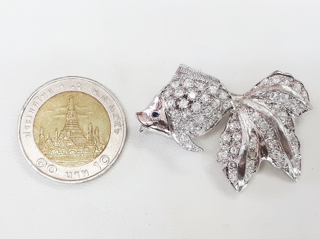เข็มกลัดเงิน 925 ปลาทอง พลอยขาว