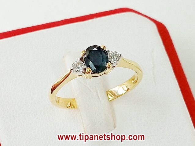 ทอง18K ไพลิน 3.15 กะรัต เพชรเกสรใหญ่ 1.02 กะรัต เพ...